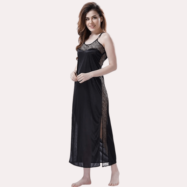 Introducing our Elegant Lace Seductive Black Nightgown, a stunning mix of class and sexiness that will make every night a special one. This beautiful piece is made for people who like finer things. It is the right mix of elegance and sensuality. A seductive atmosphere is created by the deep black colour, which gives off an air of mystery and class. The intricate lace details give this nightgown a bit of classic romance and make it look even more beautiful.