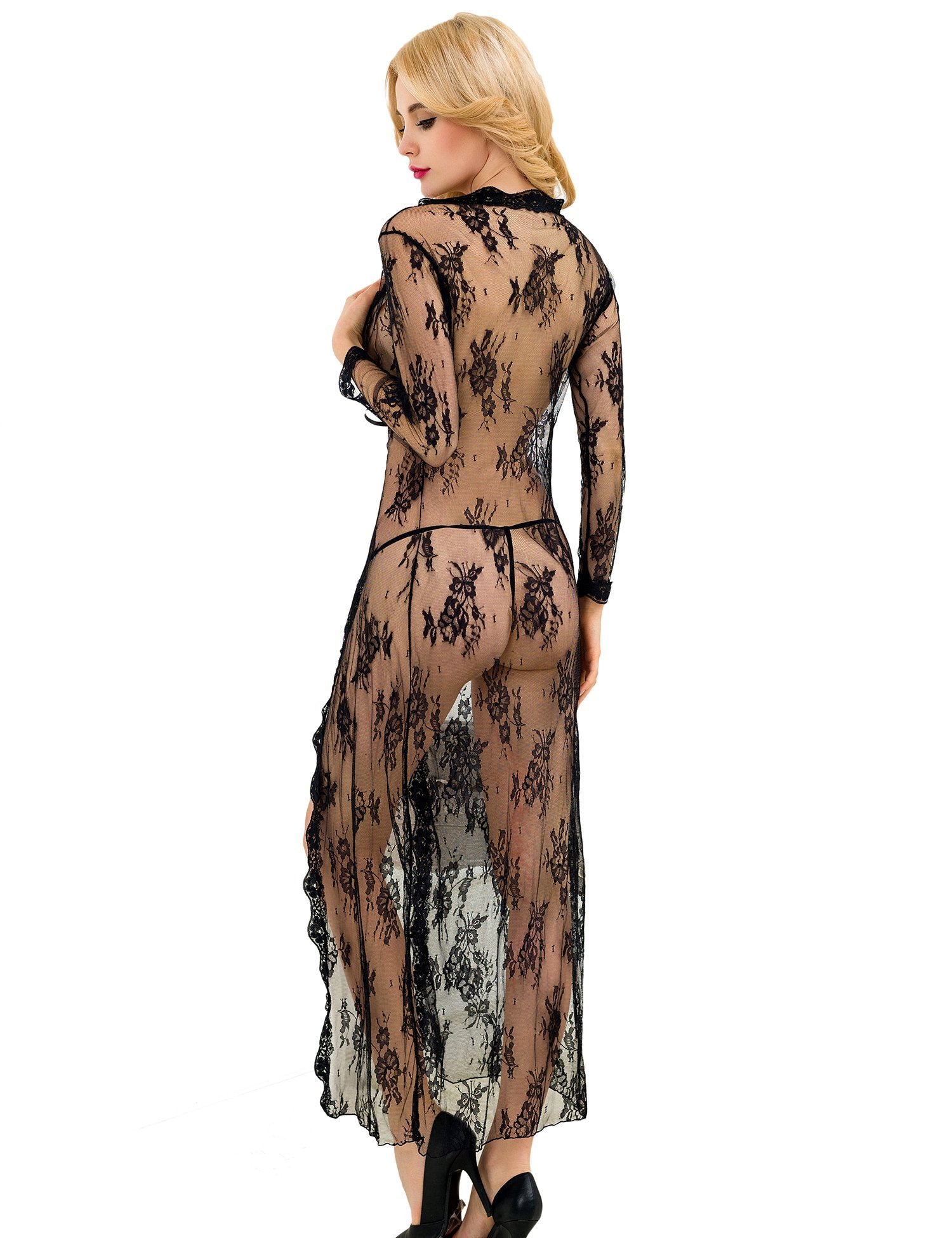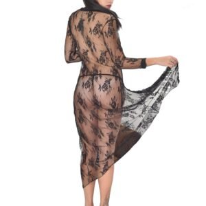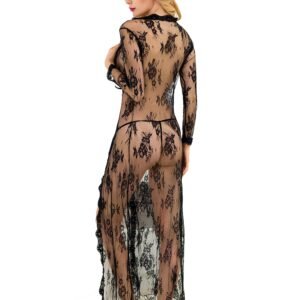 Free Size Color Black Fabric Eye Lace Material Composition Nylon + Spandex Inner Lining No Inner Lining Pattern Self Design Waist Band Waist Rise Neck Type V Neck Closure Coverage Full Cup Underwire Non Wire Sleeves Suitable for Women Occasion Bedroom Wash Care Gentle Hand wash in normal water Pack of 1 X Nightgown Front Open Nightgown –