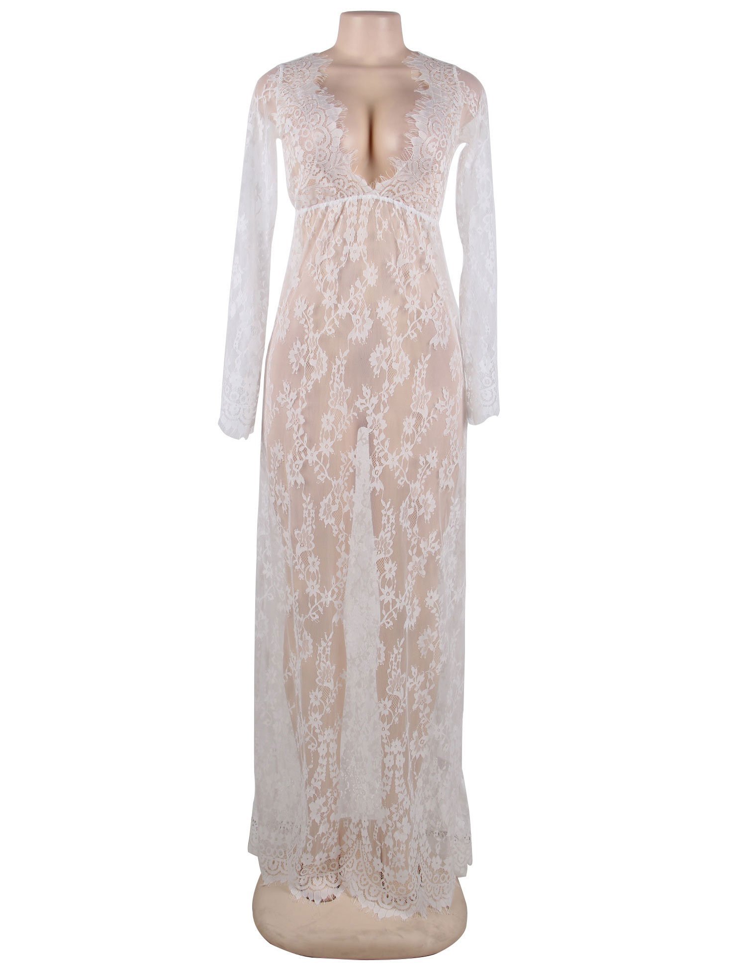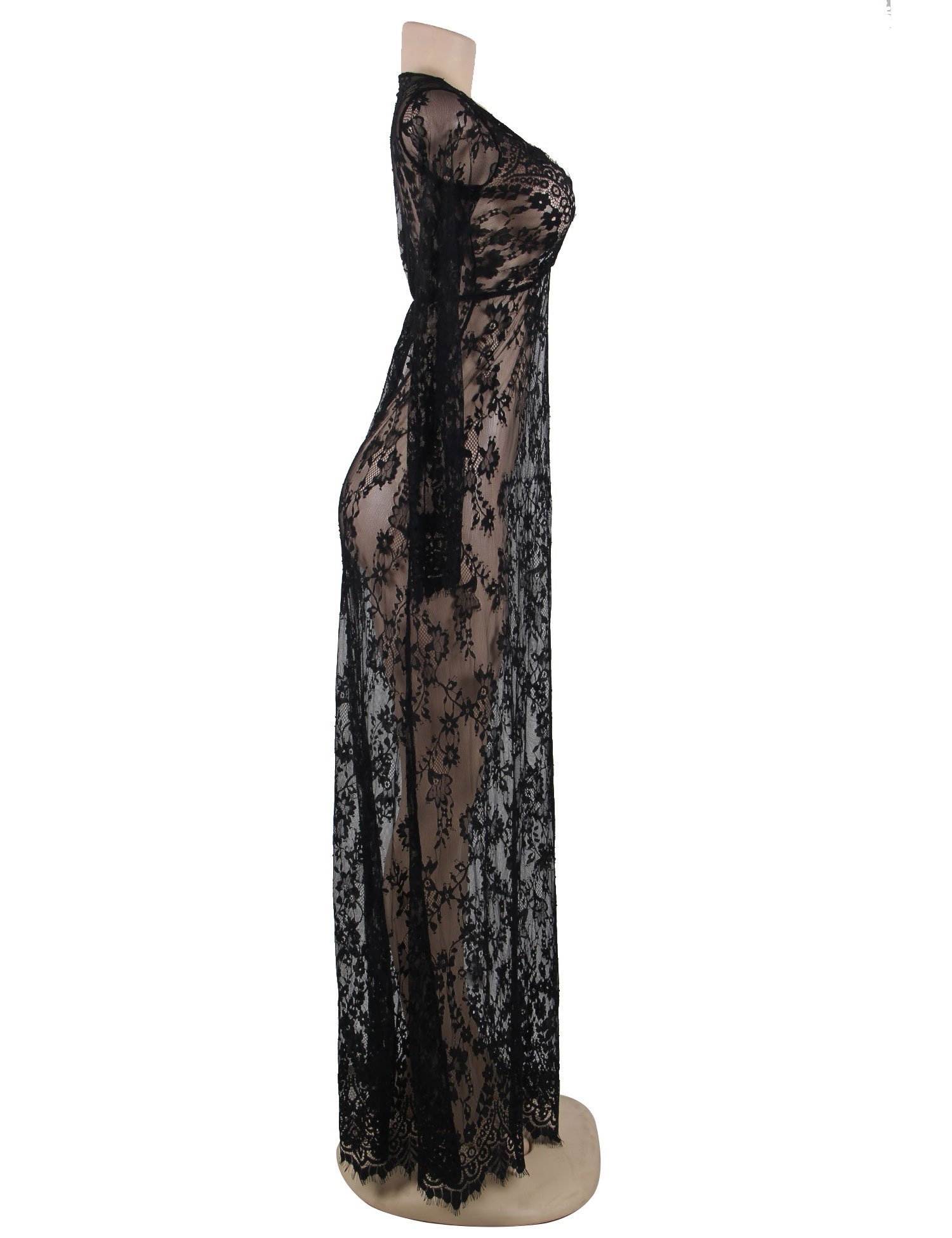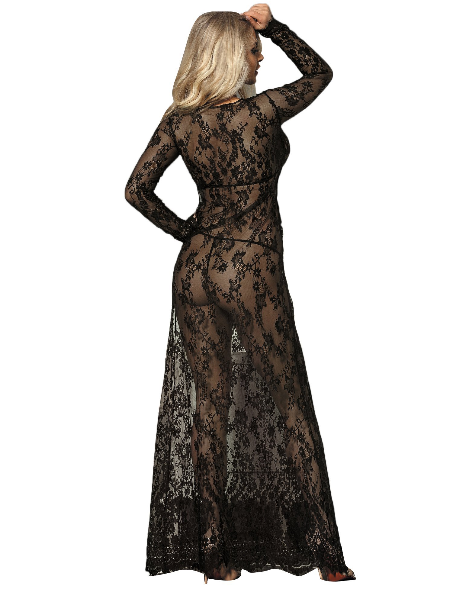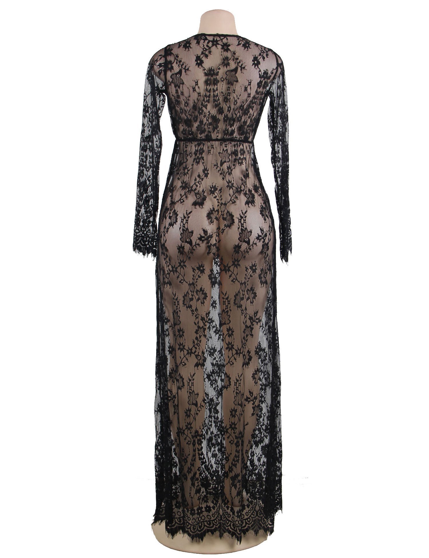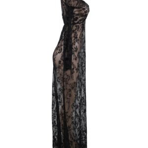 Free Size Color Black Fabric Eye Lace Material Composition Nylon + Spandex Inner Lining No Inner Lining Pattern Self Design Waist Band Waist Rise Neck Type Deep Neck Closure Coverage Full Cup Underwire Non Wire Sleeves Suitable for Women Occasion Bedroom Wash Care Gentle Hand wash in normal water Pack of 1 X Nightgown Regular Nightgown –