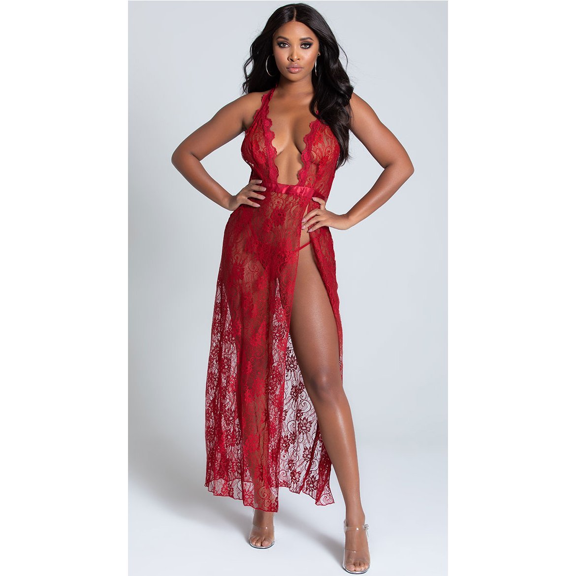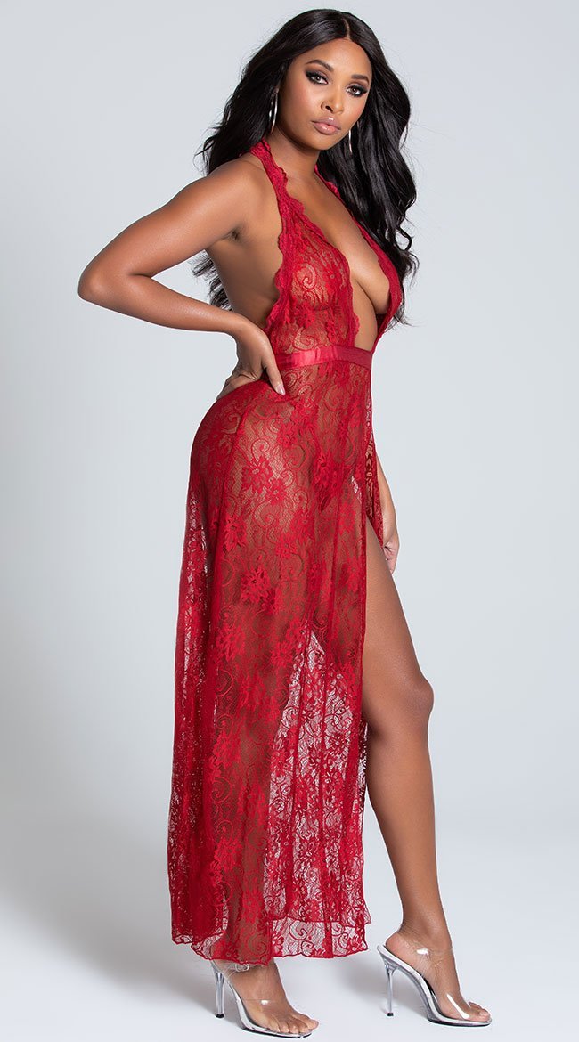 Free Size Color Black Fabric Lycra Lace Material Composition Nylon + Spandex Inner Lining No Inner Lining Pattern Self Design Waist Band Waist Rise Neck Type Halter Neck Closure Coverage Full Cup Underwire Non Wire Sleeves Suitable for Women Occasion Bedroom Wash Care Gentle Hand wash in normal water Pack of 1 X Nightgown Side Open Nightgown –