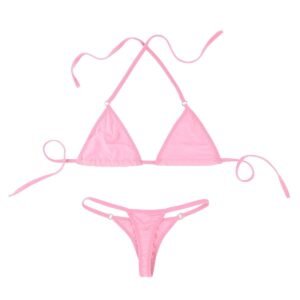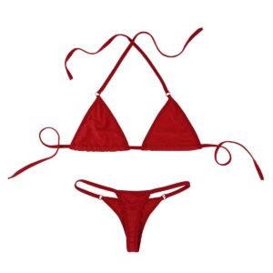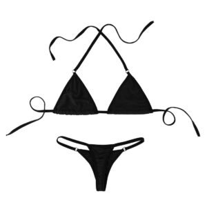 Free Size Color Black Fabric Microfiber Material Composition Plyester + Spandex Inner Lining No Inner Lining Pattern Solid Waist Band Outer Elastic Waist Rise Low Waist Neck Type Halter Neck Closure Rope Coverage Half Cup Underwire Non Wire Sleeves Suitable for Women Occasion All Wash Care Gentle Hand wash in normal water Pack of 1 X Bikini Set Thong Bikini –